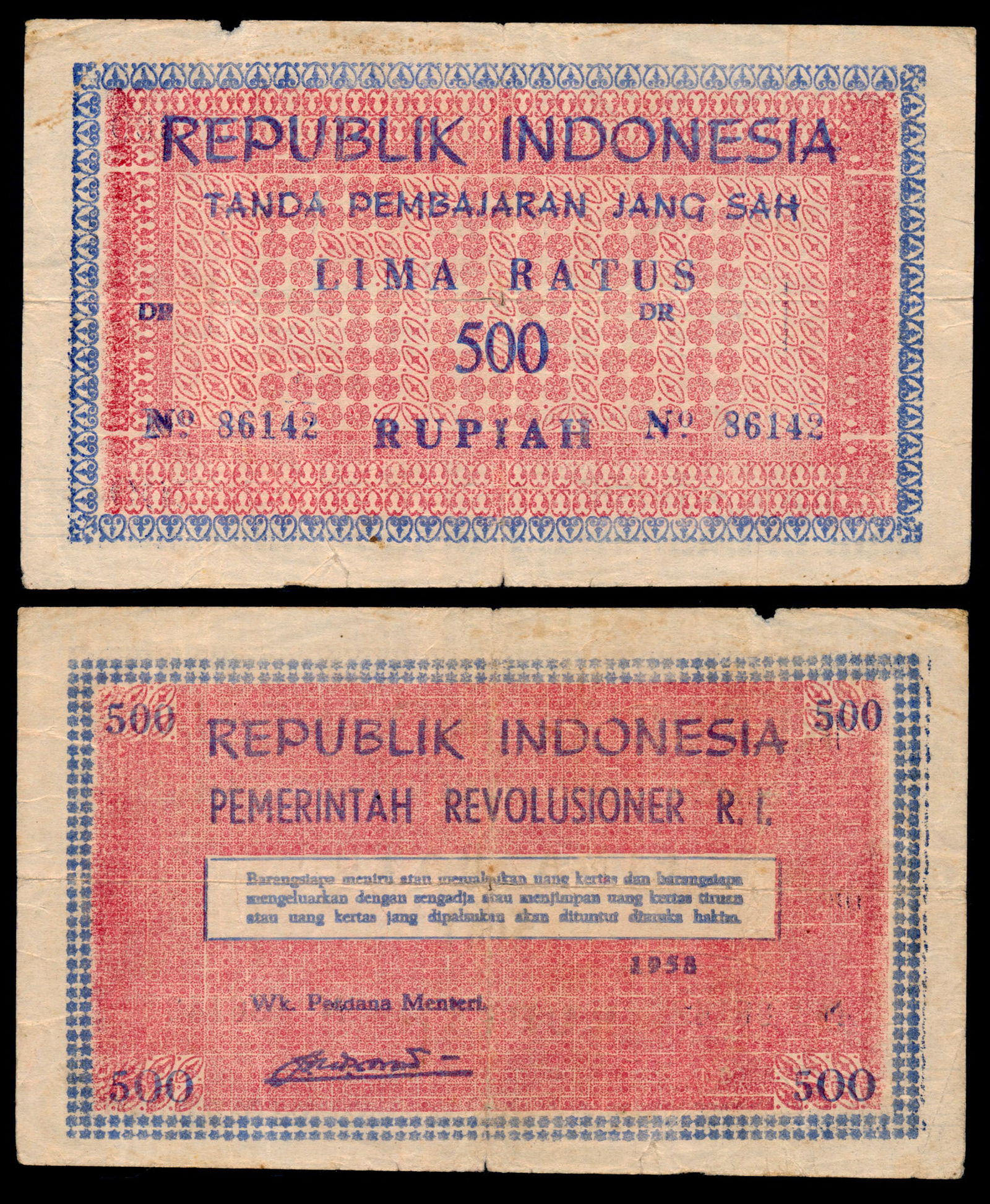 Indonesia 500 Rupiah 1958