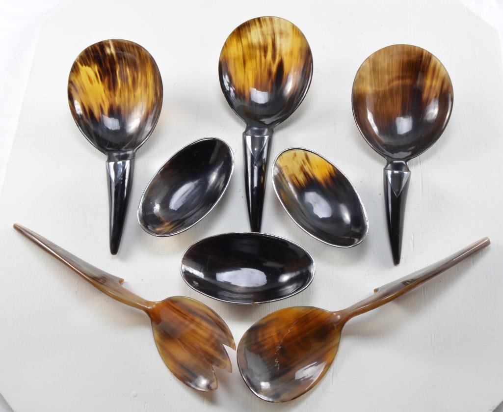 Indonesian Buffalo Horn and Silver Serving Set