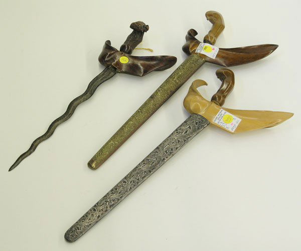 LOT OF 4: SOUVENIR DAGGERS.3 days LeftAfrican Congo, Arabian & Other Implements 3pc LOTMar 12, 2026NATIVE AMERICAN CEREMONIAL ARTICLES, LOT OF THREE4 days LeftBELKNAP BLUEGRASS AND PLUMB VINTAGE AXES, LOT OF THREE4 days LeftASSORTED MANUFACTURERS VINTAGE DRAW KNIVES / SHAVES, LOT OF FIVE4 days LeftASSORTED SIGNED FORGED AND STEEL LOG PEELING/DE-BARKER LARGE DRAW KNIVES / SHAVES, LOT OF THREE4 days LeftA LOT OF FOUR EUROPEAN COURTSWORDS (SMALLSWORDS), 18TH–EARLY 19TH CENTURYMar 22, 2026Antique Handcrafted Tribal Bladed Implements 3pcsMar 12, 2026Filipino Moro Kris & Congo Gbaya Tribal ImplementsMar 12, 2026Indonesian Javanese 18-19thC Pamor Meteorite Blade Keris Kris Dagger Sword w/ Detailed Sheath | Rare2 hrs LeftIndonesian Rencong Knife and Wood ScabbardMar 26, 2026Massai hand wrought dagger together with Indo-Persian engraved and decorated battle axe, 19th1 day LeftAntique Indonesian Tribal Mandau SwordMar 14, 2026Rare Antique Indonesian KERIS Dagger with Unique Damascus Steel Blade Pattern & Fine Carved GripMar 14, 2026Antique Nepalese Kukri (Khukuri) with Inscribed Blade & Decorated Scabbard, plus Companion KnivesMar 14, 2026AN OTTOMAN CAUCASIAN KNIFE SET IN A RED LEATHER SHEATH, 19TH CENTURYMar 22, 2026