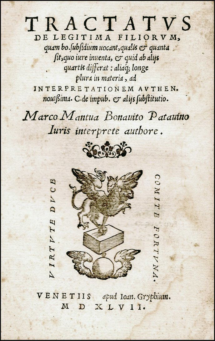 Sold[Civil Law, Inheritance, Legitimate] Mangili, 1654IMPORTANT AND PONDEROUS ESSAY ON THE LEGITIMATE INHERITANCE Mangili, Giovanni Antonio. De imputationibus, et detractionibus in legitima, Trebellianica, et alijs quartis contingentibus bonorum haereditSee Sold Price