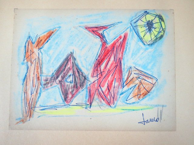 Ink and pastel, composition, signed
