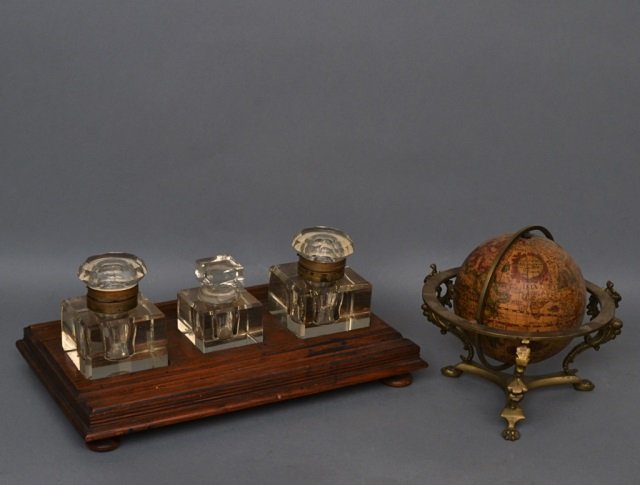 Lot Brass Desk ItemsMar 04, 2026ASSORTED KEROSENE STAND LAMPS, LOT OF TWOMar 05, 2026Magnifier, Bottle Holder & Coffee Grinder 3pc LOT4 days LeftGroup of Three Antique Glass Oil LampsMar 15, 2026Triple hanging kerosene Angle lamp with 3 globesMar 27, 2026TWO VINTAGE WORLD GLOBES, ROM'S JORDGLOBE, REPLOGLMar 07, 2026Assorted Collection of Map Motif Home DecorMar 08, 202618-inch W & T M Bardin terrestrial globe on stand, English, 1843Old World 8" Globe w Turned Wood Stand3 days LeftOld World Style 8" Globe w Turned Wood Stand3 days LeftEbonized Inkstand, and Large Ink Bottle.THREE LAMPS 19th CenturyMar 04, 2026THREE HARDWOOD OIL LAMPS Late 19th/Early 20th Century Heights from 9.75" to 10.75".Mar 04, 2026BRASS SIGNAL CANNON DESK STANDISH 20th Century Height 5.5". Width 17.5". Depth 11.25".4 days LeftMap Motif Tray & Globe BookendsMar 08, 2026Vintage Reglogle Illuminated 16" Heirloom Floor Globe6 days Left