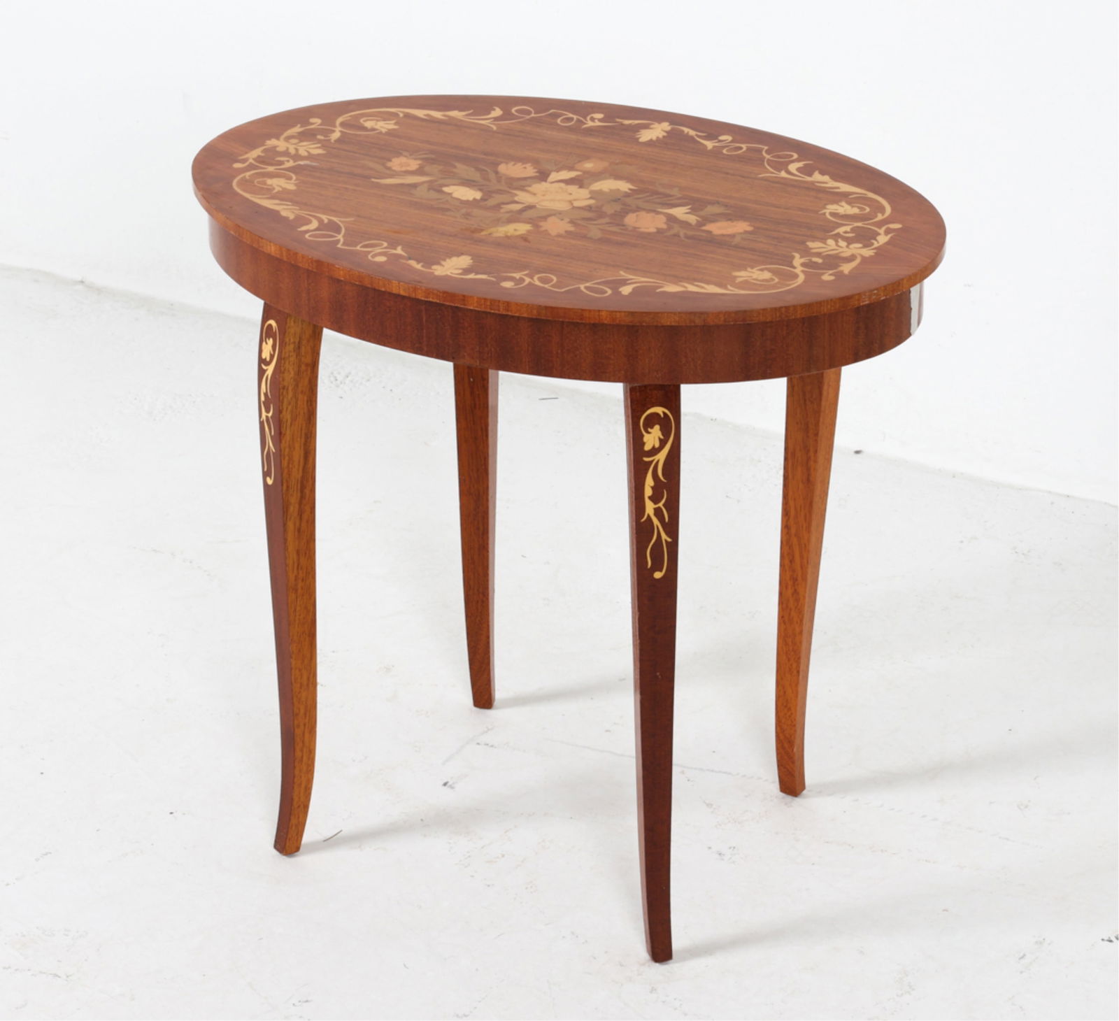 SoldVINTAGE INLAID ITALIAN MUSIC BOX TABLEVINTAGE INLAID ITALIAN MUSIC BOX TABLE. Height: 22.25 in. by Width: 18.5 in. by Depth: 18.5 in.See Sold Price