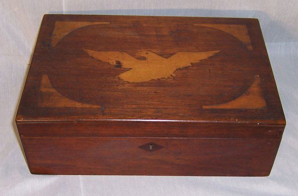 Inlaid walnut fitted box with eagle inlay top