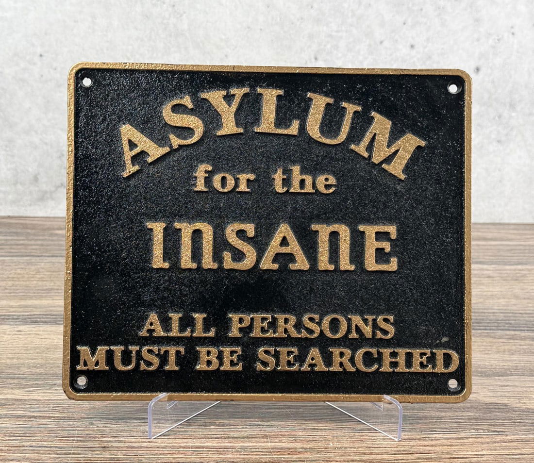 A cast iron 'Insane Asylum' sign 13 x 27cm
