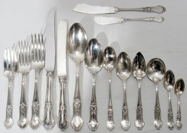 FRANCIS HIGGINS STERLING SILVER UTENSILS LOT OF 65 hrs LeftLot of silver utensils. To include: continental lion handle spoon, shaped bowl serving spoon,Mar 01, 2026Large lot of sterling silver and silver handled utensils. To include: Durgin serving fork and spoonMar 01, 2026Towle "Louis XIV" sterling flatware service.Feb 24, 2026TOWLE EL GRANDEE STERLING FLATWARE SET.Feb 25, 2026Reed & Barton "Francis I" sterling flatware set.Feb 24, 2026Lunt "Eloquence" sterling flatware service.Feb 24, 202682 Piece Gorham Sterling "Covington" Flatware Set6 days LeftINTERNATIONAL STERLING FLATWARE SET, BRIDAL VEIL.Feb 25, 2026Watson Co. "Juliana" sterling flatware service.Feb 24, 2026International Sterling "Angelique" Flatware ServiceFeb 26, 2026International Silver Frontenac 102 Piece Sterling Silver Flatware Set for 12Feb 22, 2026Gorham "St. Dunstan" sterling flatware set.Feb 24, 2026TOWLE STERLING FLATWARE SET, OLD MASTER PATTERN.Feb 25, 2026Towle Louis XIV Sterling Silver Flatware Set for 8 78 PiecesFeb 23, 2026A Lunt sterling silver Eloquence flatware service, mid 20th centuryFeb 25, 2026