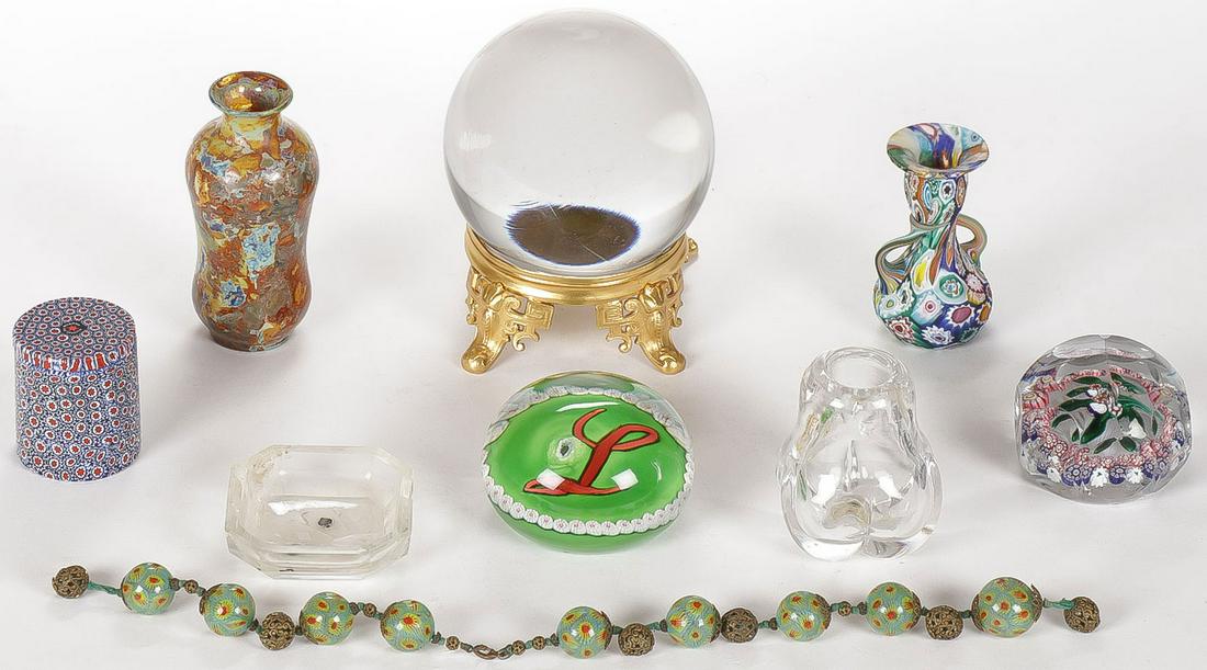 LARGE LOT GLASSWARE, GLASS PAPERWEIGHTS, ETC. 12" AND SMALLER3 days LeftLot of Seven Hand Painted Wood & Paper Mache Boxes4 days LeftLot of sterling silver dresser accessories, including various covered glass jars and scent bottles.Mar 01, 2026ENAMEL LOT OF TRINKET BOXES PILLBOXES INCL. HEREND, LIMOGES, NEIMAN MARCUSFeb 21, 2026Lot of antique jewelry and accessories. To include: 1) 14K gold framed micro mosaic pin of ruins.Mar 01, 2026LOT OF 10 MISCELANIOUS GLASS AND PORCELAIN VASESFeb 22, 2026Estee Lauder Dunhill Ciner Limoges Compact MirrorFeb 26, 2026(6) FABERGE STYLE JEWELED & ENAMELED EGG-FORM BOXES, 4 MUSIC BOXESFeb 22, 2026Four Vinage Ceramic Brass Glass Pod VasesJul 24, 2025Murano Glass Millefiori Paperweights, 12292 Lots AwaySet Vintage Art Glass Vases, SculpturesFeb 20, 2026NINE PIECES OF AMERICAN GLASS.7 days LeftArt Glassware Vases & Bottles2 days LeftOrrefors & Other Paperweight, Colorful Glass CandyFeb 22, 2026Murano Art Glass AssortmentFeb 24, 2026Colorful Art Glass2 days Left