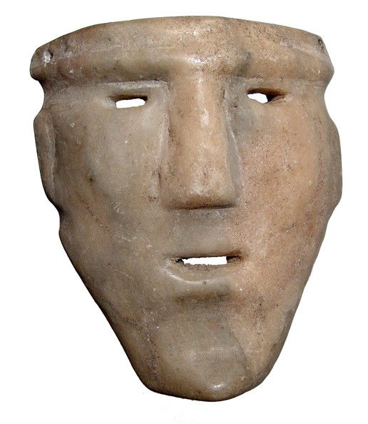 Interesting green stone mask with stoic features
