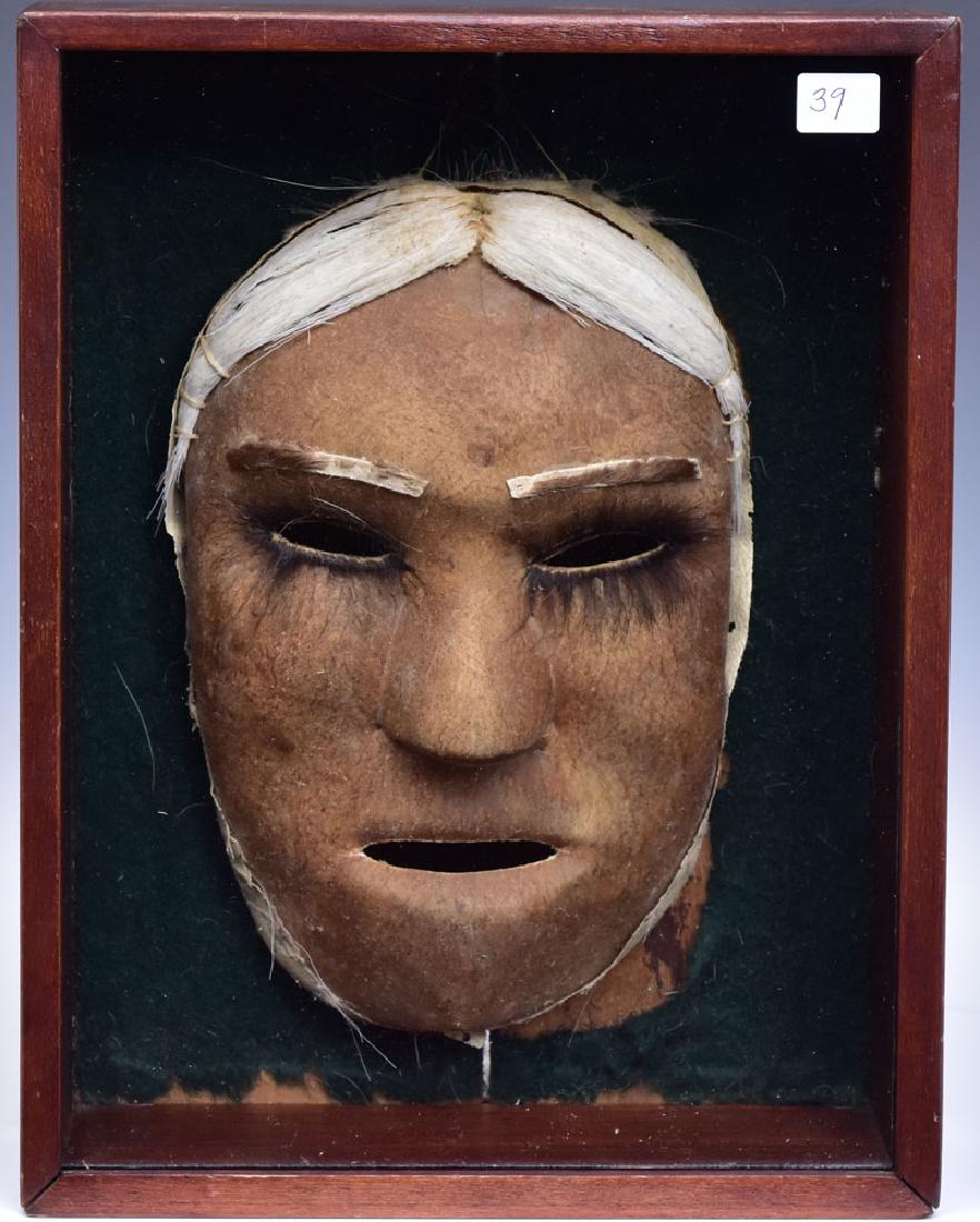 SoldEskimo Mask Anaktuvuk Pass, 1963, Made w/ Caribou & Goat Purchased In 1963 Mounted In DisplayMask 12" x 8", Display 19" x 14"See Sold Price