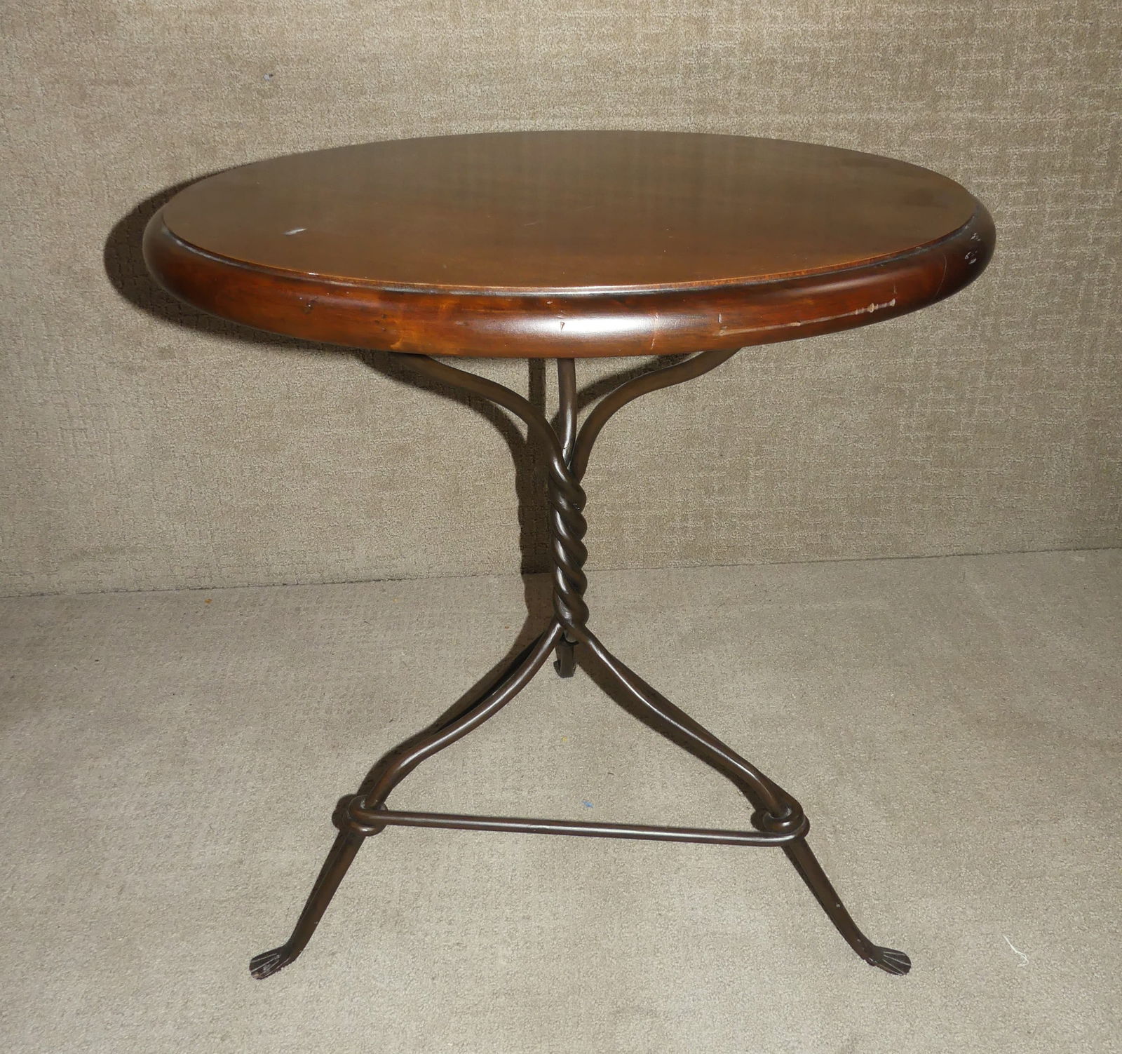 George III Style Mahogany Tea Table, England, late 19th/early 20th century,Round dining table with a black wrought iron base and wooden, top.Mar 07, 2026AN UNUSUAL GEORGE III CHERRYWOOD OVAL TRIPOD TABLE, LAST QUARTER 18TH CENTURYMar 25, 2026A rosewood occasional table, c.1860,Mar 18, 2026Vintage Mid Century Wood Dining TableAmerican Empire Style Pedestal Table6 days LeftAmerican Cherry Tripod CandlestandMar 21, 2026Chinese Tall Teakwood Stand H 8" Dia. 7.25"Mar 19, 2026American Classical Mahogany Tilt-Top Candle StandMar 14, 2026Maitland Smith Round Mahogany Pedestal Lamp TableThonet Martini Side-End TableMar 15, 2026Marble Top Side Table6 days LeftGeorge III Style Mahogany & Marquetry Tripod TableMay 07, 2026Baker End Table2 days LeftTheodore Alexander Brooksby Circular Bar Table in MahoganyMar 15, 2026Mahogany Regency Round Drum End Table with Single Drawer and Brass AccentsMar 13, 2026
