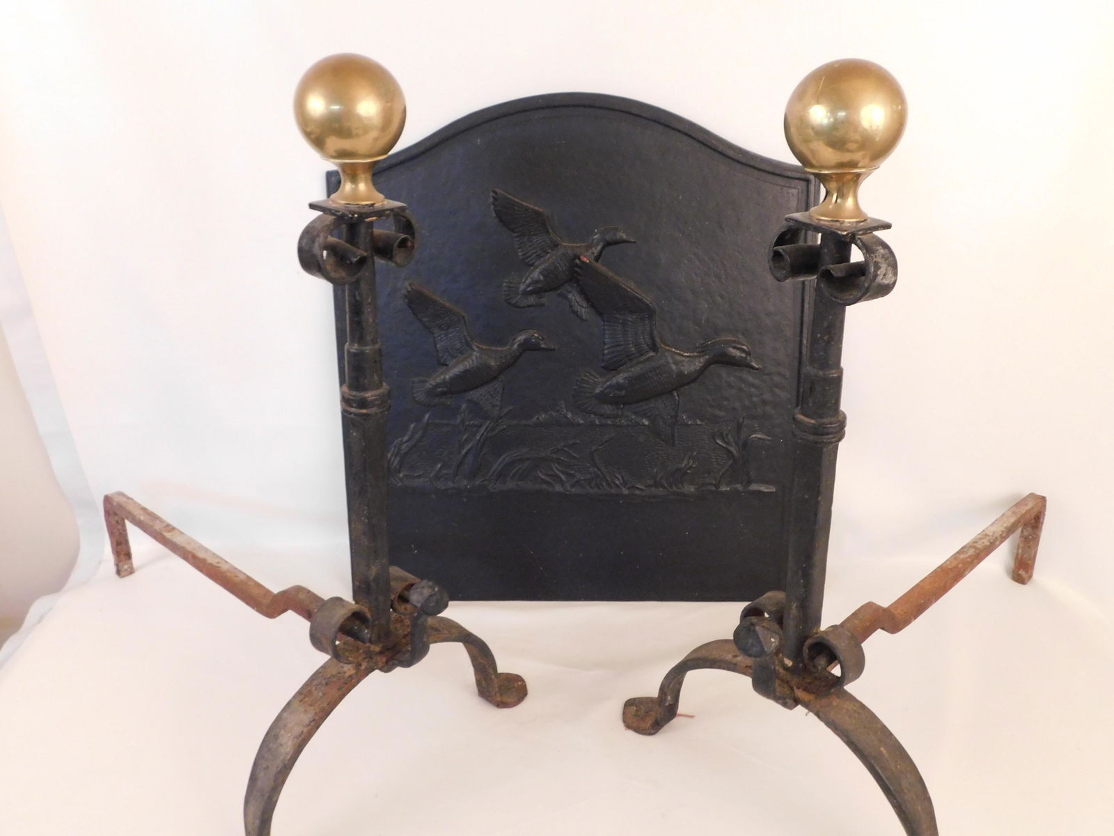 IRON FIREBACK W/DUCKS & ANDIRONS