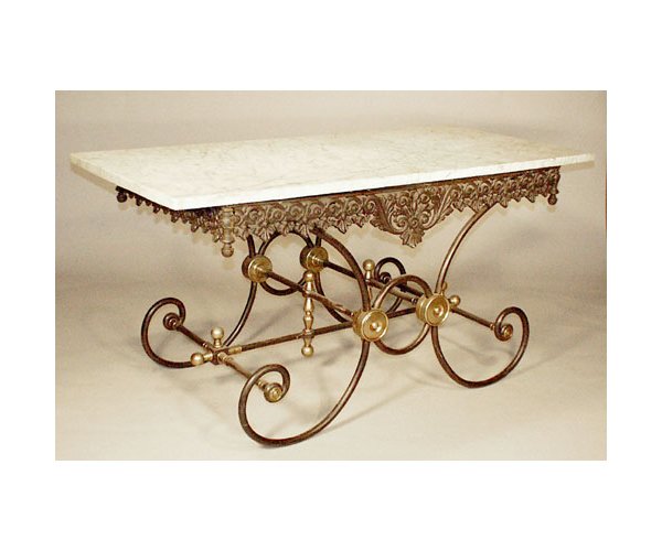 Iron, Marble-top Baker's Table.