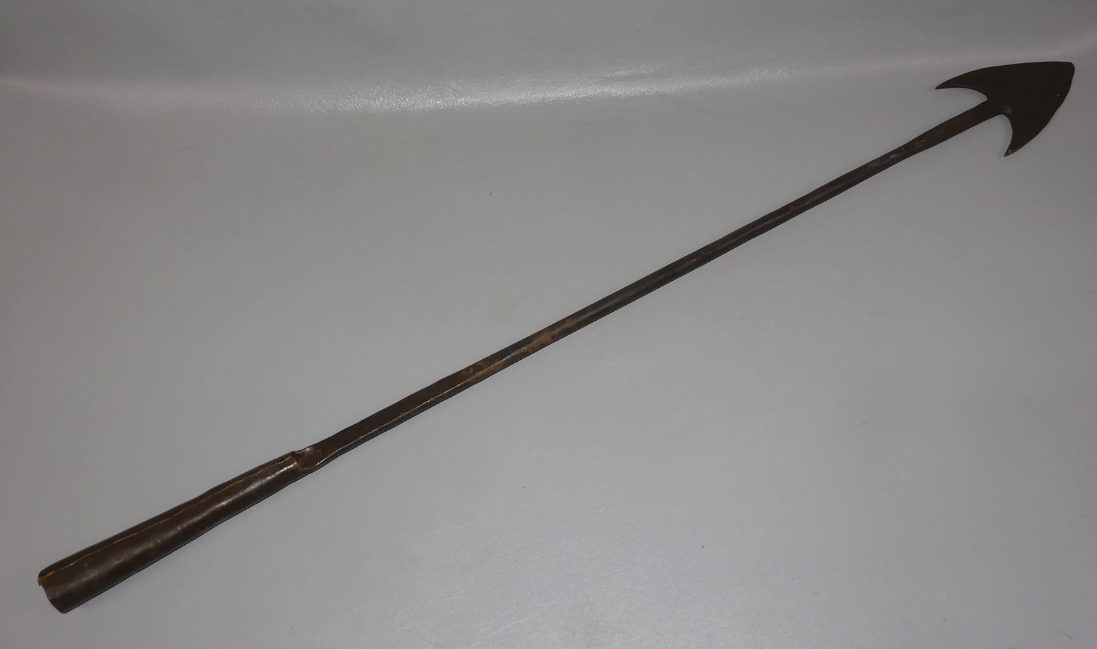 Antique Parrying Sword or Long DaggerMar 01, 2026Hand Wrought Iron Meat ForkEARLY AMERICAN COLONIAL STYLE HALBERD.Mar 01, 2026ZENO KELLY CAST IRON TOGGLE HARPOON 19th Century Length 28.5".Feb 26, 2026Iriquios war club, pre-1900Mar 07, 2026Maasai Lion-Killing Iron SpearheadMar 06, 2026CAST STEEL SPADE Late 19th/Early 20th Century Length 35.5".Feb 26, 2026Viking Period Iron Battle AxeFeb 27, 2026Southern plains arrow with stone tip, sinew, paint, pre-1892Mar 07, 2026ANTIQUE 18TH C SWORD CANE WITH HORSE HOOF HANDLEMar 07, 2026SCARCE EARLY GROMMET IRON HARPOON 19th Century Length 30".Feb 26, 202617th - 18th CENTURY EUROPEAN HALBERD.Mar 01, 2026CAST IRON TOGGLE HARPOON 19th CenturyFeb 26, 2026Southern plains arrow with stone tip, sinew, paint, pre-1892Mar 07, 2026Very Fine Edo era Japanese Samurai YARI Spear Koshira with Fabulous Lacquered Finish Including GoldMar 14, 2026SINGLE-FLUE WHALING IRON Early 20th Century Length 30.25".Feb 26, 2026