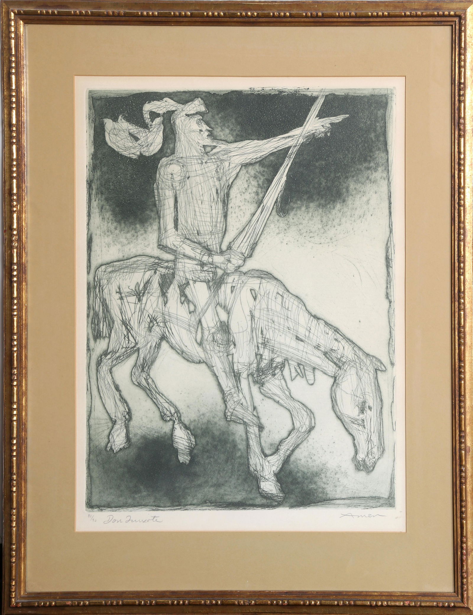 Irving Amen, Don Quixote, Etching
