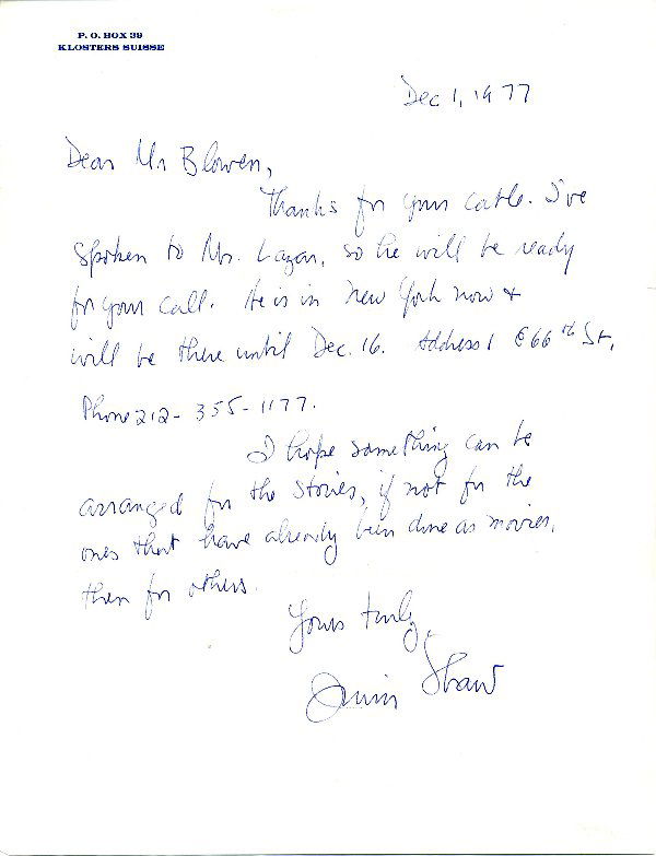 Irwin Shaw Autograph Letter Signed UACC PADA
