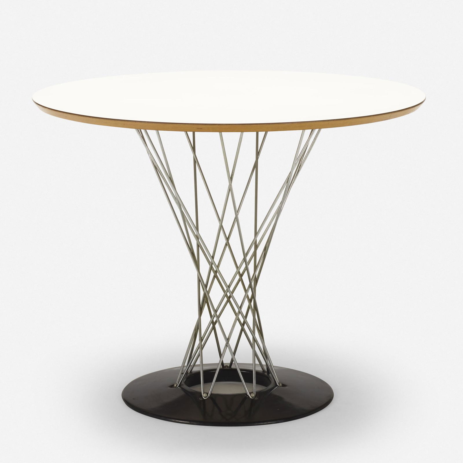 Isamu Noguchi, Cyclone Dining Table, Model 312 - C. mid 20th century. Chromed steel, steel base withIsamu Noguchi, Cyclone Dining Table, Model 312 - C. mid 20th century. Chromed steel, steel base with matte finish, laminate over plywood. No apparent marks, likely made for Knoll. 28.5" h x 47.75" dia