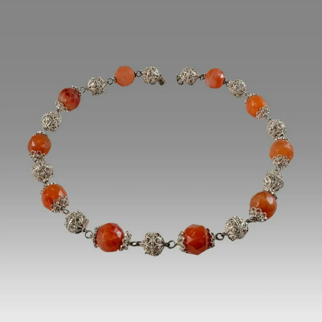 Islamic Agate and Silver Bead Necklace.