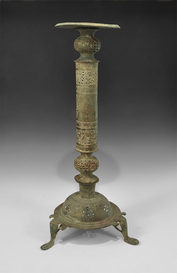 Islamic Bronze Openwork Oil Lamp Stand