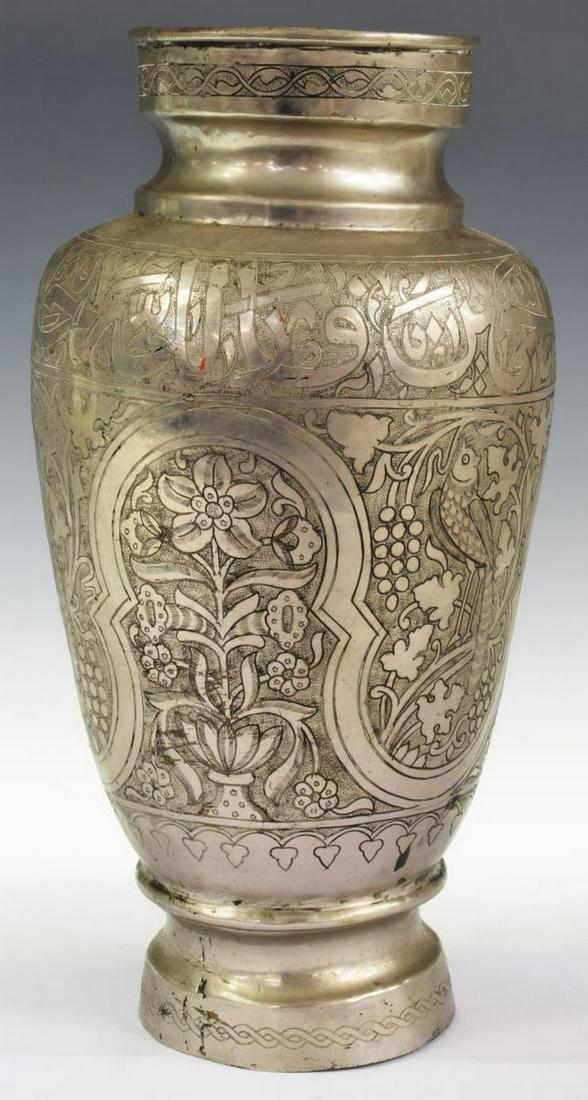 ISLAMIC CHASED SILVER CALLIGRAPHY ARABESQUE VASE