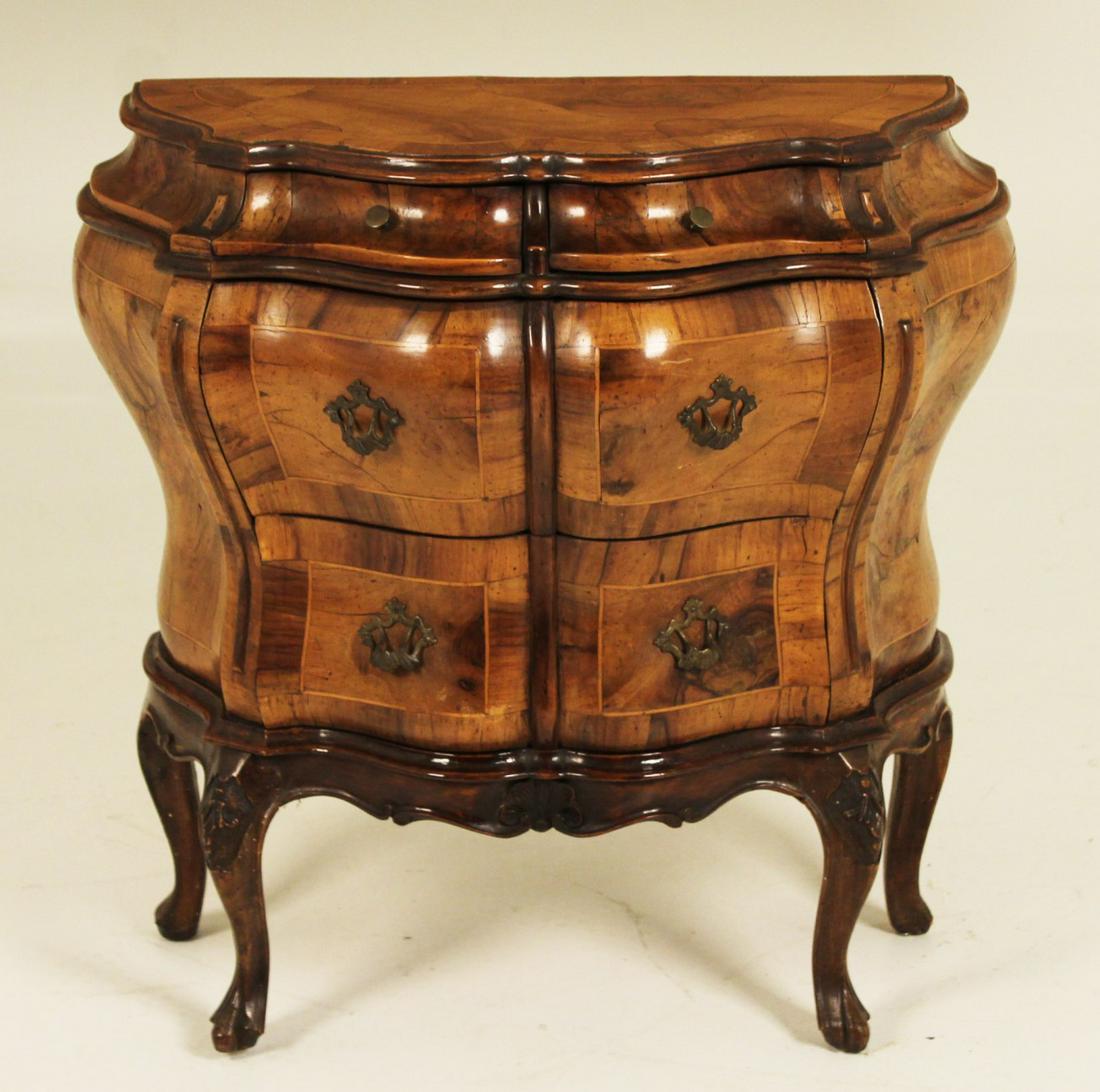 ITALIAN BOMBE SHAPED WALNUT COMMODE