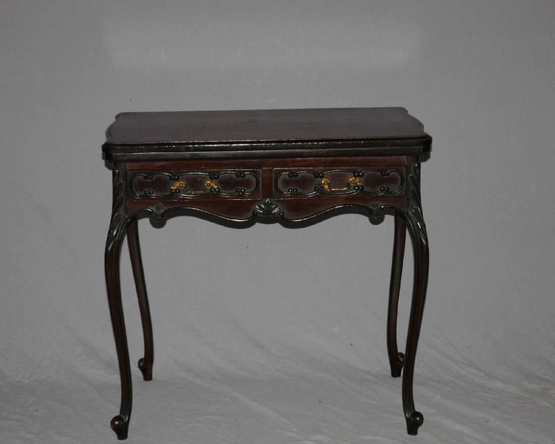 Vintage Chippendale Style Carved Mahogany Leather Top Game Table