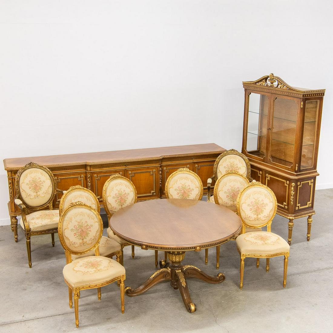 Italian dining room, sideboard, round table, display