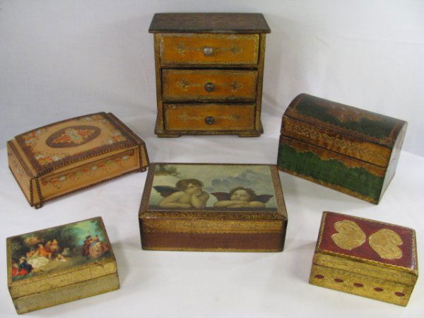 ITALIAN FLORENTINE HAND PAINTED BOXES 6pc