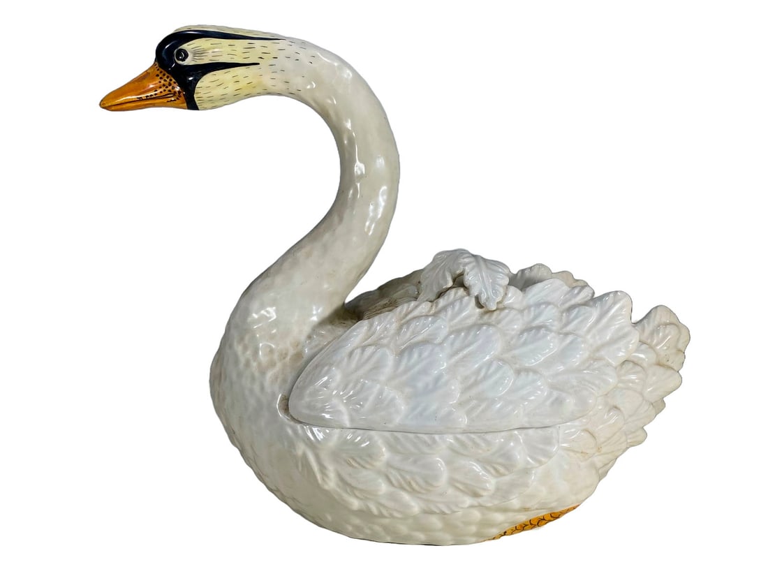 Italian Large Ceramic Swan Box