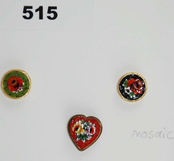 [3] Assorted Antique MICRO MOSAIC Pins: Oval with Red Center; Flower Border with Black Center;Auctions at Deer Ridge Farm4.5(52)$10(1 bid)4 days Left