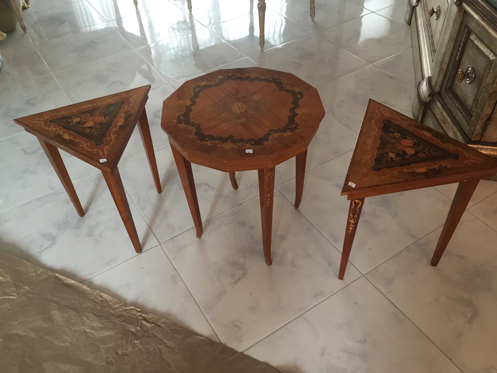 Italian Mosaic Box Table with Polychrome Wood and Wrought Iron Base