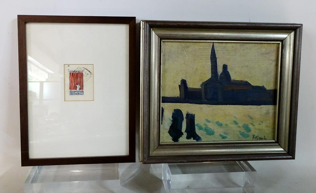 2 PCS. ITALIAN STAMP & OIL ON BOARD SGN. FERUZZI VENICE