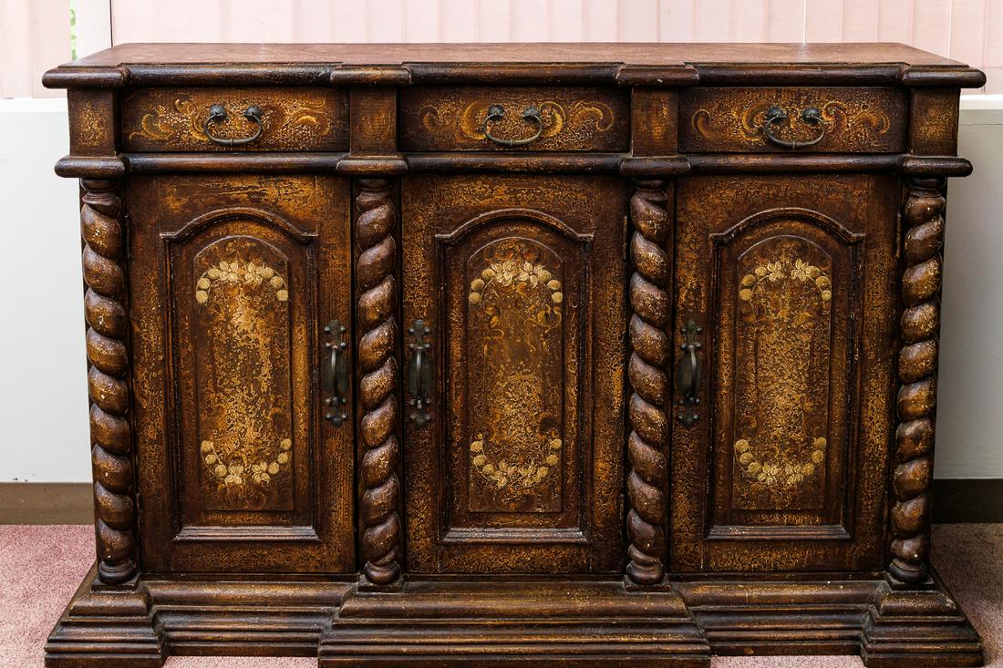 Italian Style Distressed Console Cabinet