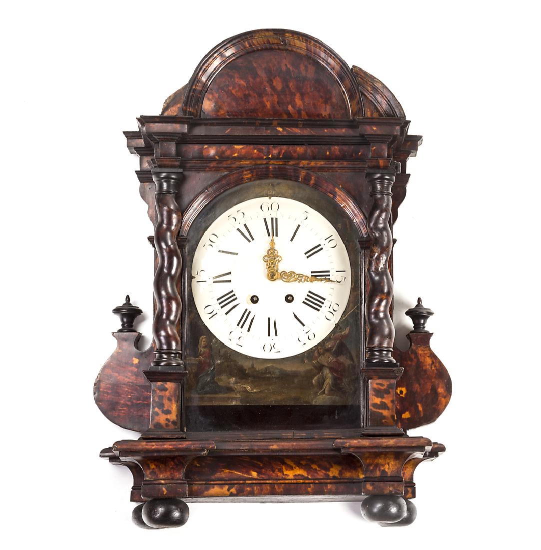 Italian table clock in tortoiseshell with salomonic