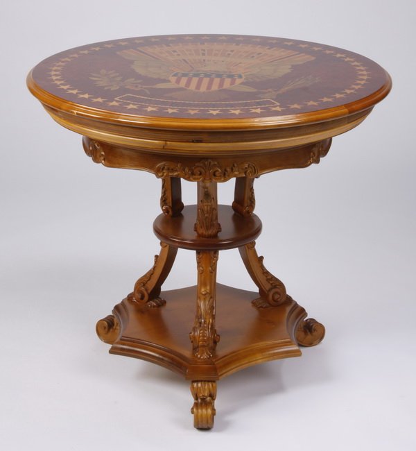 Italian walnut table inlaid w/ eagle design