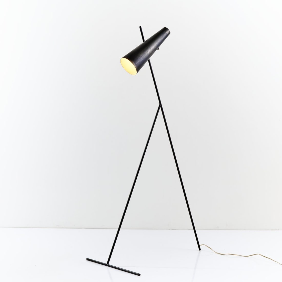 Midcentury Black Iron Rod Tripod Floor Lamp