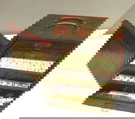 Lot 4 Chinese Jewelry Boxes inc. Carved Jade Inlay11 hrs LeftSmall mahjong cabinet China, 20th century390 Lots AwayMahjong set Bakelite in original carrying case, case is 6" by 19" by 4.5", handle as isMar 09, 2026Antique Mahjong Game SetMar 08, 2026Antique Chinese Mahjong Set w/ Inlaid Case7 hrs LeftAntique Chinese Mahjong & Lottery Staff Set6 days LeftAntique 1920s Chinese Mahjong Game SetMar 10, 2026Antique Chinese Mah Jongg Set.11 hrs LeftFaux Bamboo White Marble Top 4 Drawers ChestMar 09, 2026Vintage Mahjong Bakelite & Bamboo Game SetMar 17, 2026Chinese Music Jewelry Box2 days LeftBamboo Back Mahjong Tile Set in Case 141 Tiles Plus ExtrasMar 28, 2026Mahjong, China 20th century,Mar 13, 20263 Boxes and Mahjong Set4 days LeftA Wooden Jewelry Box670 Lots AwayDOUBLE BIN CHINA TRADE TEA CADDY IN LACQUERED BOX 7 1/2" X 13 1/2" X 11"Mar 15, 2026