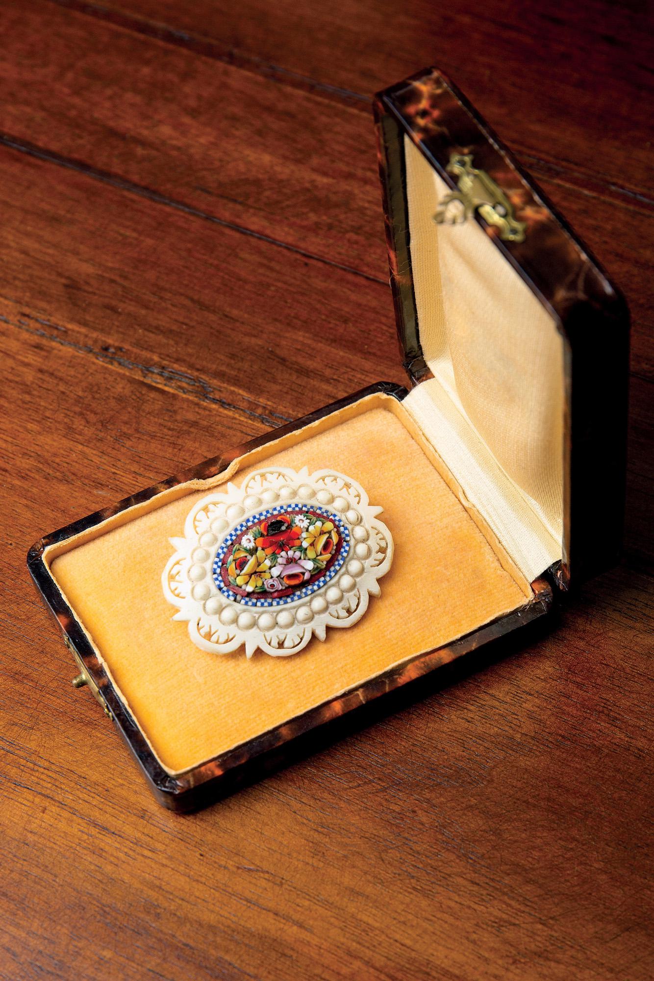 Ivory micro mosaic brooch