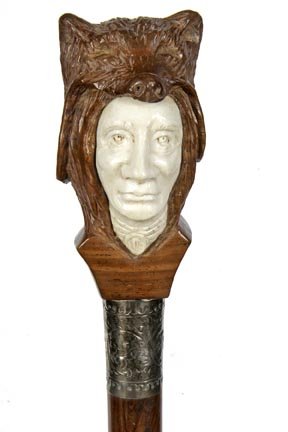 14. Ivory Native American Cane-Ca. 1960-A massive