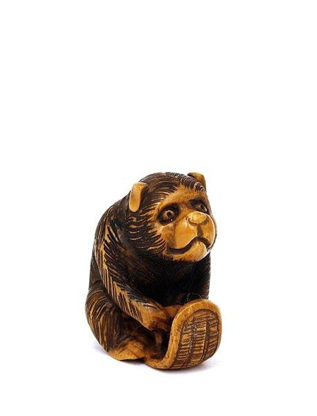 Ivory Netsuke Bear Dog Seated on Shoe Sg