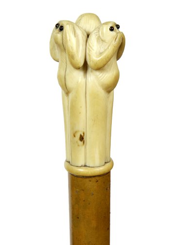 10.Ivory Three Monkeys Cane- Ca.1900-Carved ivory