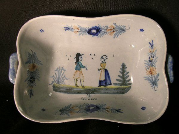 J B QUIMPER HAND PAINTED 2 HANDLED DISH BLUE