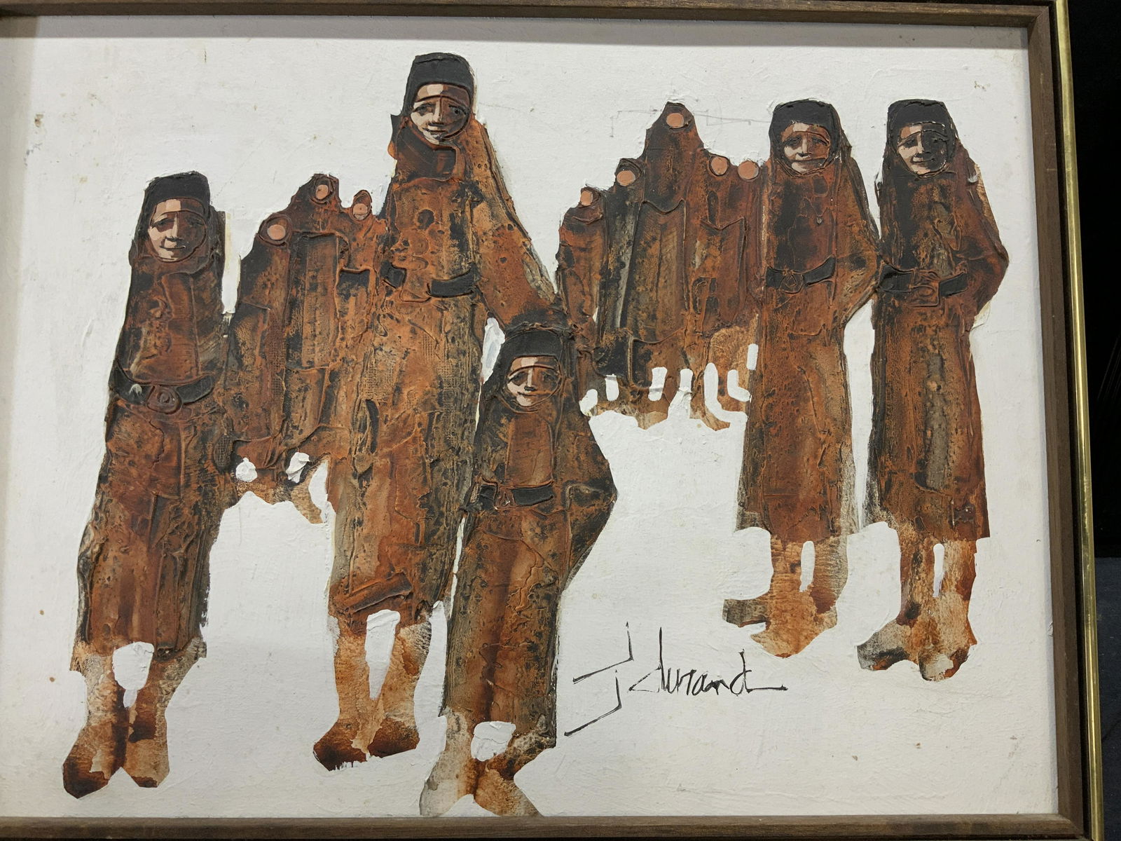J DURAND SIGNED Abstract Figures Paint on Board