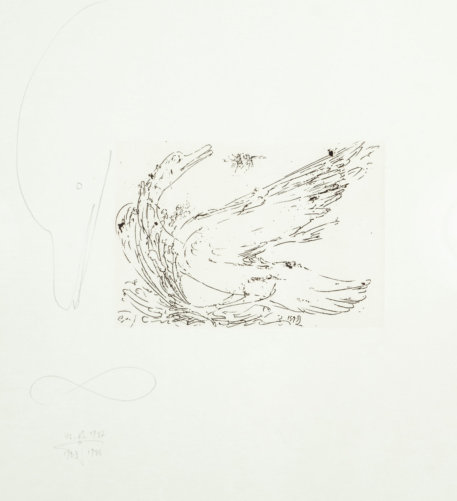 J. HAFNER (*1940), Sitting swan, 1987, Etching