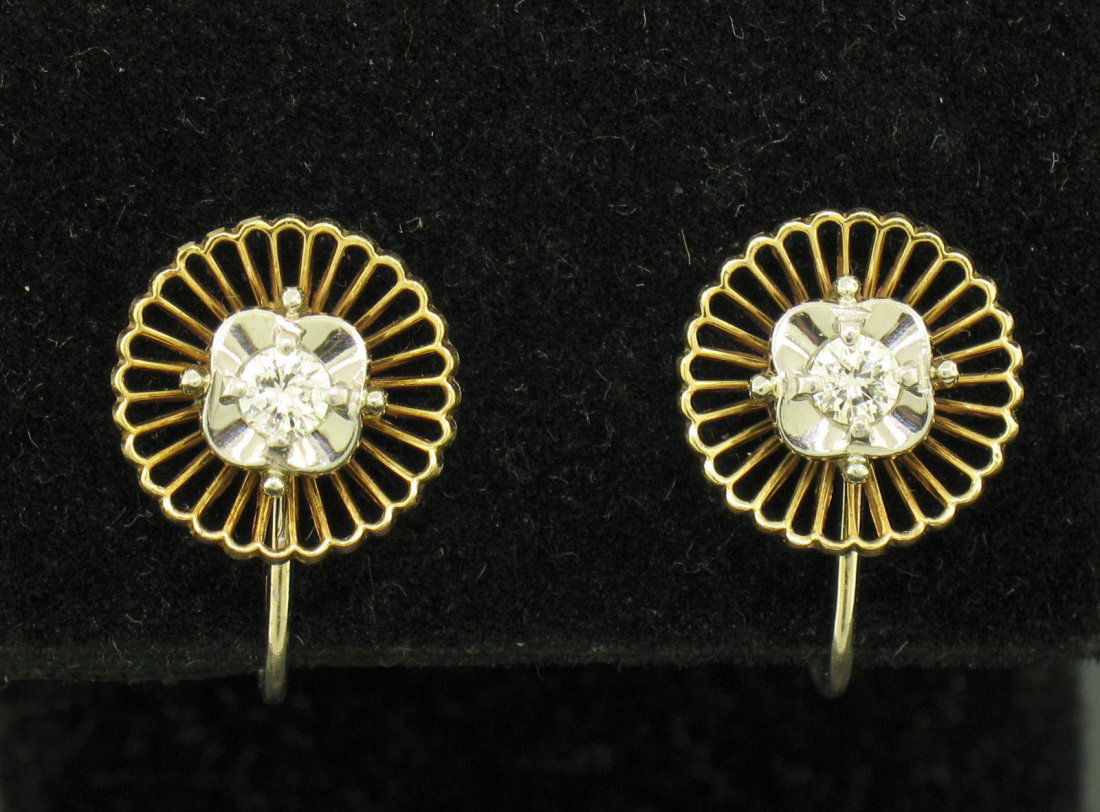 Stunning 18K Yellow White Gold 7.00 Ct Diamond Earrings