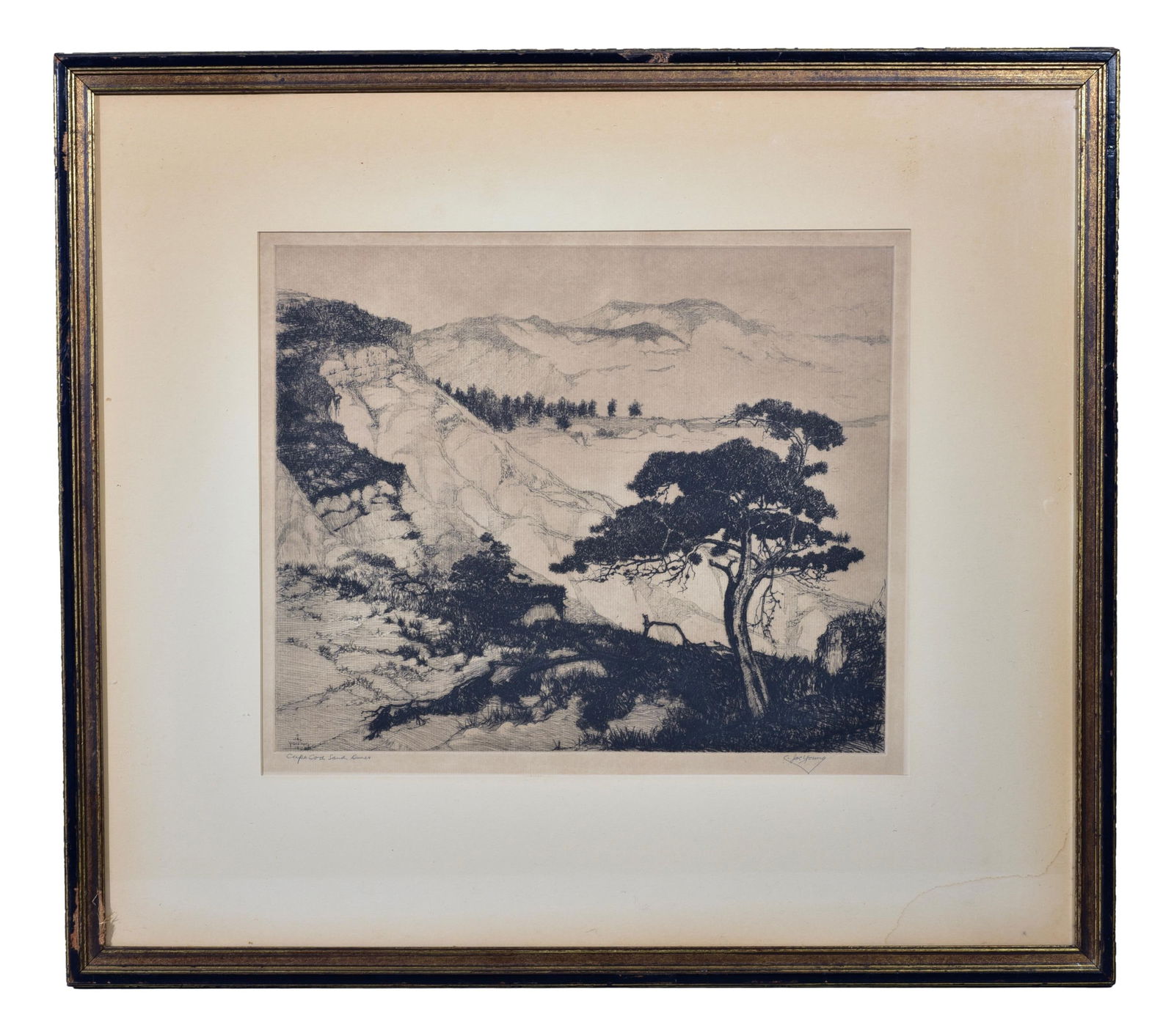 Jac Young Etching Titled “Cape Cod Sand Dunes” Dated 1928