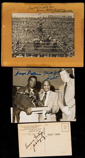 AMERICAN BASKETBALL AUTOGRAPHED PHOTOS AND 1997 TICKETS2 days LeftLot of 2 1996 Topps Mickey Mantle Commemorative Set Reprints. Different, See PicturesFeb 20, 2026AMERICAN ELVIS PRESLEY VINYL RECORD AND POSTAGE STAMPS2 days LeftGeorge Kalinsky (1936-2025): Joe Frazier: Three Photographs[one 1972]Muhammad Ali Cassius Clay Signed Framed 8x10 Photo with JSA AuthenticationFeb 20, 2026Rocky Marciano and Ezzard Charles Analog Black and White Photograph Print Boxing PhotoMar 09, 2026Jack Dempsey Signed Vintage New York Postcard PSA AuthenticatedFeb 25, 2026Muhammad Ali Signed Framed 8x10 Photo Display with COA and 2 Unsigned Photos2 days LeftMuhammad Ali Hand Signed 8x10 Photo with 3 Unsigned Photos JSA Authenticated Framed DisplayFeb 24, 2026Boxing Action Analog Photograph Joe Louis and Jersey Wolcott A Hard BlowFeb 23, 2026Rocky Marciano and Ezzard Charles Analog Photo Print Action Boxing Black and White PhotographMar 09, 2026Jackie Robinson Signed 1939 Pasadena City College Yearbook 6 Authentications JSA5 days LeftMuhammad Ali Signed 11x14 Photograph PSA/DNA AuthenticationFeb 23, 2026Floyd Patterson vs. Ingemar Johansson Knockdown Black and White Boxing Analog Photograph PrintMar 09, 2026Muhammad Ali Signed 11x14 Photograph PSA/DNA AuthenticationFeb 20, 2026George Kalinsky (1936-2025): Muhammad Ali: Three Photographs