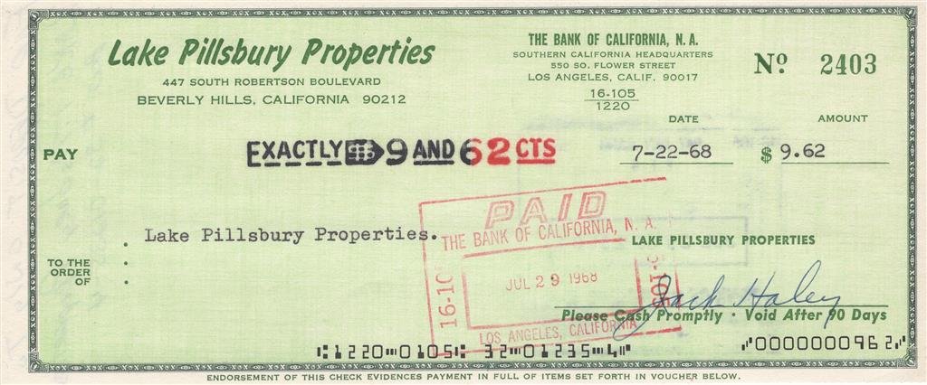 Jack Haley (Gone With The Wind 'Tin Man') Hand Signed Cheque Dated 24th October 1977Pamono Auctions£30
