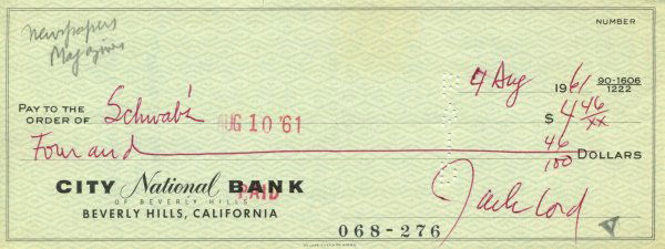 Jack Palance signed bank check