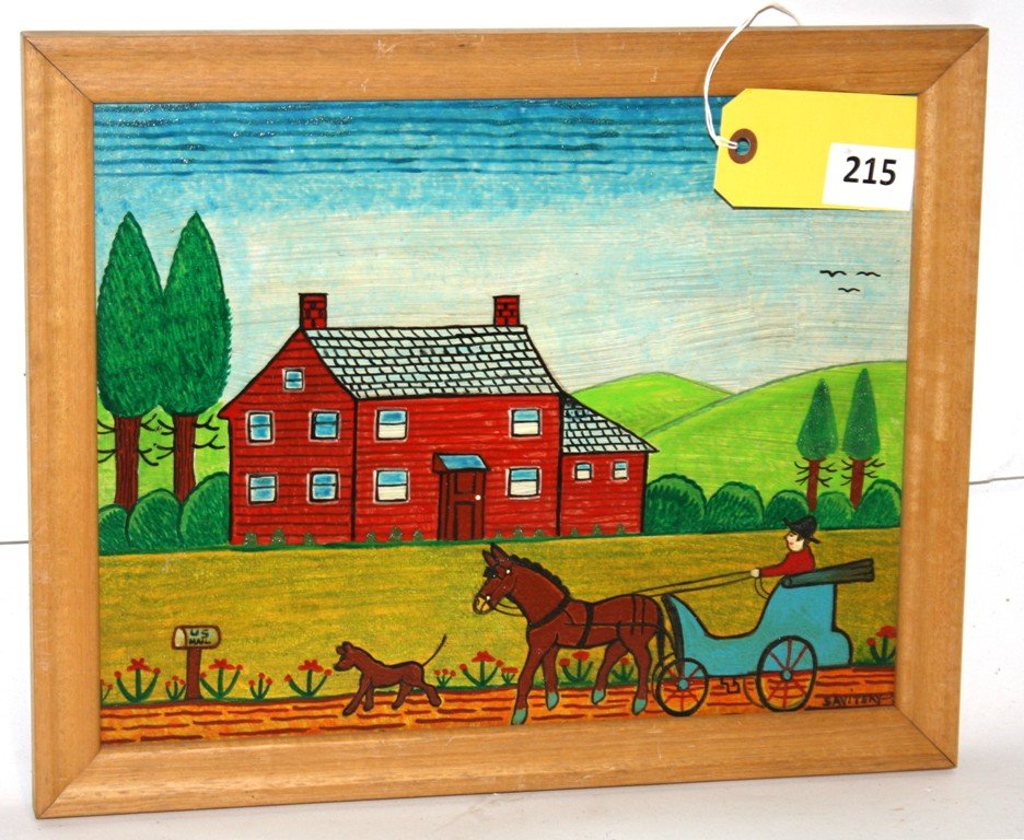 Sold2 Small Jack Savitsky O/B Paintings, Mining RelatedTwo (2) small John "Jack" Savitsky (Pennsylvania, 1910-1991) oil on board Folk Art or Naive Art paintings. Includes one (1) small coal mining-related painting depicting a white horse pulling a cart wiSee Sold Price