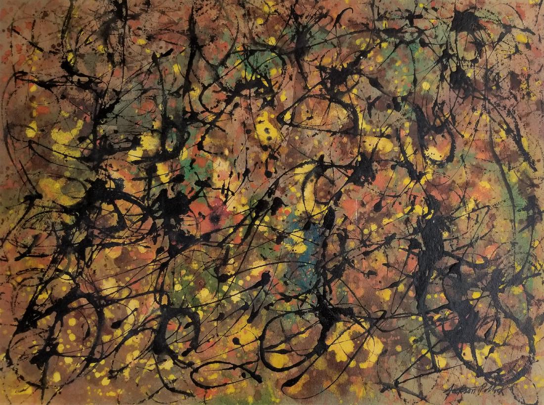 Jackson Pollock mixed media on cardboard